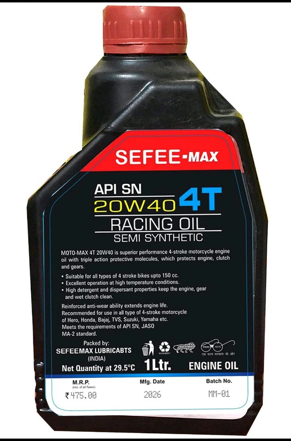 200/Rs.,)SEFEE -MAX 20W40 SEMI SYNTHETIC Full-Synthetic Engine Oil | 3X Protection | With Actibond Technology | Engine Protection for Scooters | JASO MB | Synthetic Technology-1L (Pac of 5)5000km.running