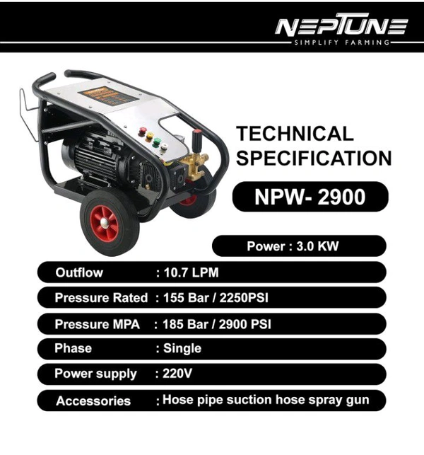 Neptune Simplify Farming NPW-2900 Electric High Pressure Car Washer | 220 W, Single Phase, Hose Pipe and Spray Gun | Professional Washing Car/Bike, Garden Walls, Floor/Household Cleaning Purpose