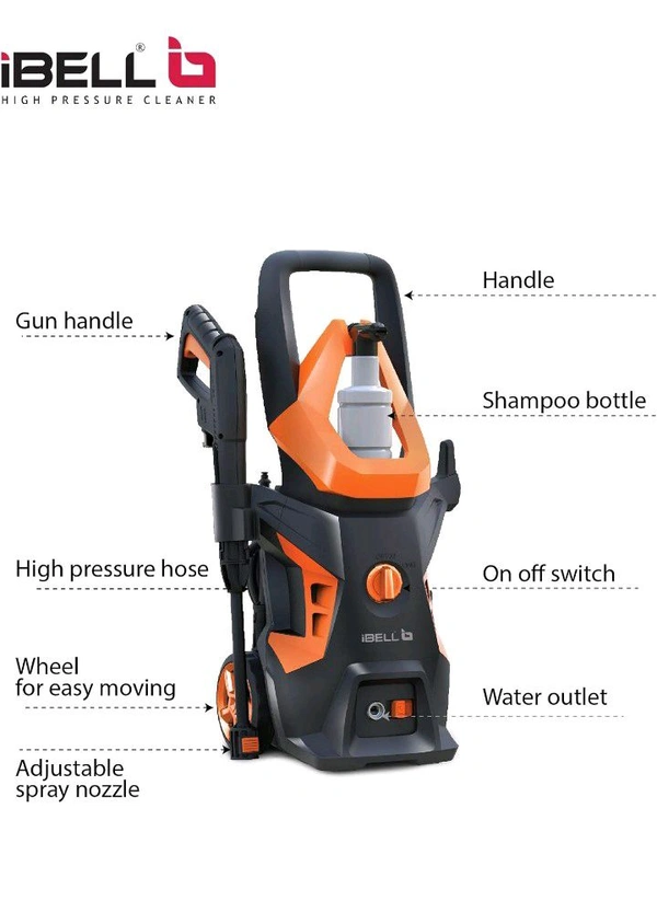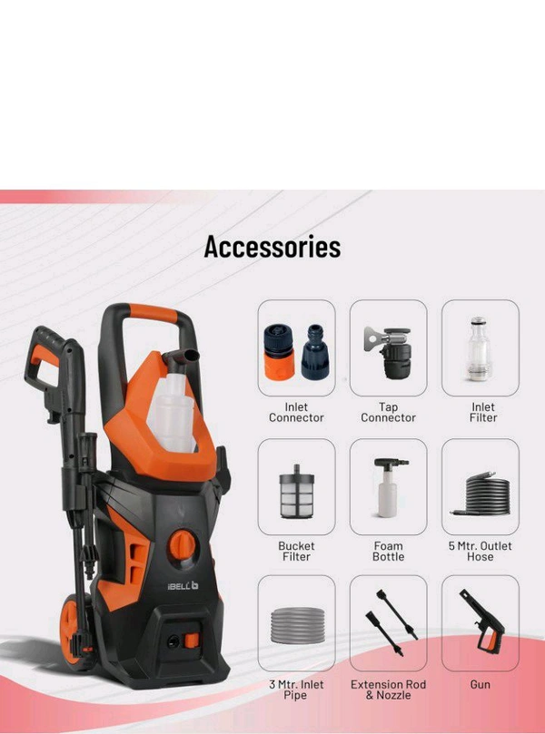 IBELL WIND55 High Pressure Washer, 1800W Motor, 140 Bar Car Washer High Pressure Gun, 7.8 L/Min Flow, 5M Hose, Turbo Nozzle, Portable Pressure Washer for Car, Bike, Home & Outdoor Cleaning